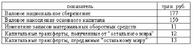 Сумма валового накопления капитала, изменения запасов материальных оборотных средств и чистого приобретения ценностей называется… -{00}валовым сбережением +{00}валовым накоплением -{00}валовыми смешанными доходами -{00}валовой прибылью