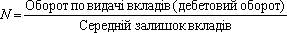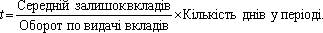 Тривалість одного обороту депозитних вкладень у днях (або середній термін зберігання вкладених коштів). Для його розрахунку використовується формула: