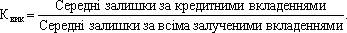 де Кт — коефіцієнт трансформації; Д0 — дебетовий оборот з видач короткострокових позик строком до одного року; К0 — кредитовий оборот з надходжень коштів на депозитні рахунки строком до одного року.