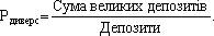 Цей коефіцієнт показує, який процент від загального обсягу залучених ресурсів розміщений у кредити. Якщо коефіцієнт перевищує 75 %, то це свідчить про ризиковану агресивну кредитну політику банку. Якщо ж він менше 65 % — про пасивну кредитну політику. Рівень диверсифікації депозитів:
