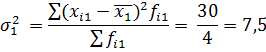 4) Определим внутригрупповые дисперсии: