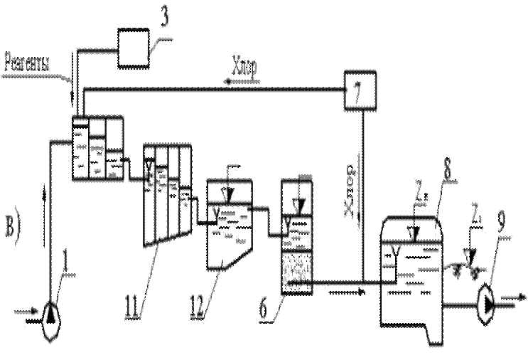 20. Высотные схемы станций ХВО Состав и технологическую схему работы самотечных систем обычно представляют в виде высотной схемы в профиле основных сооружений водоочистной станции. Высотную схему начинают составлять с наиболее низко расположенного сооружения – резервуара чистой воды. При определении отметок уровней воды в элементах сооружений водоочистной станции за начальную отметку принимают отметку поверхности земли площадки водоочистной станции z1.