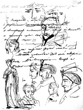 Посмотрите на кляксу, изображенную на рисунке, а еще лучше сделайте такие кляксы сами. Для этого надо согнуть лист белой бумаги, капнуть чернила на место сгиба, сложить бумагу пополам и пальцем потереть место, где соберутся чернила, чтобы разогнать их возможно шире. Испортив несколько листов бумаги, вы научитесь делать замечательные кляксы. Ответьте сами и спросите кого‑нибудь, что напоминает сделанная вами клякса? Чем богаче у смотрящего фантазия, тем больше он увидит в этих кляксах. Подобные кляксы вошли в историю экспериментальной психологии как метод швейцарского психолога Роршаха. Он рассматривал его как тест для изучения особенностей целостной личности. Кто что увидит? А наши бабки в тенях от застывшего воска на стене видели тройки с женихами, брачный венец, смерть с косой, гроб… Видели они в результате апперцепции то, что либо хотели, либо, наоборот, очень боялись увидеть. Но во всяком гадании: с воском, на картах, на бобах или по полету птицы, как гадали в древние времена, всегда заложена вера в возможность предвидения, вера в наличие магической связи между результатом гадания и судьбой человека. Репродуцирующее воображение То, что не поддается непосредственному восприятию, помогает представить воображение, называемое «репродуцирующим». «Электрон меньше пылинки примерно во столько раз, во сколько пылинка меньше – чего бы вы думали? – земного шара», – писал автор популярной в первой половине нашего века «Занимательной физики» Яков Исидорович Перельман [16]. «Представьте себе алмазный куб, каждая грань которого равна ширине Ганга. Раз в тысячелетие прилетает ворон и чистит свой клюв об алмазную глыбу. Постепенно глыба истачивается. Время, в течение которого вороний клюв изотрет всю глыбу так, что от нее не останется и зернышка, – лишь мгновение в вечности», – так объяснял своим ученикам понятие вечности, отличное от бесконечности, древнеиндийский философ. Вдохновение И забываю мир, и в сладкой тишине Я сладко усыплен моим воображеньем, И пробуждается поэзия во мне: Душа стесняется лирическим волненьем, Трепещет, и звучит, и ищет, как во сне, Излиться, наконец, свободным проявленьем – И тут ко мне идет незримый рой гостей, Знакомцы давние, плоды мечты моей. И мысли в голове волнуются в отваге, И рифмы легкие навстречу им бегут, И пальцы просятся к перу, перо к бумаге… Минута – и стихи свободно потекут. О психологической сущности творчества и вдохновения лучше Пушкина не сказал ни один психолог! «Вдохновение обычно возникает в процессе упорного напряженного труда. Вдохновение ошибочно считают возбудителем работы. Вероятно, оно является в процессе успешной работы, как следствие ее», – писал Горький. Но и Пушкин ведь не говорит, что вдохновение кончается, когда на бумагу излиты первые варианты мыслей. Нет. Вся последующая работа над совершенствованием наброска может идти со всевозрастающим и захватывающим подъемом. Петр Ильич Чайковский говорил, что «вдохновение – это такая гостья, которая не любит посещать ленивых». Поэзия – та же добыча радия. В грамм добыча, в год труды. Изводишь единого слова ради Тысячи тонн словесной руды. Эти слова Маяковского замечательно точно передают работу над словом не только в поэзии, но и в любой области, связанной с письменной речью. Посмотрите на черновик пушкинских строк: И молвил: «Вы 