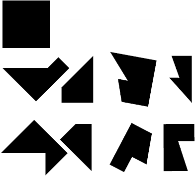 Проверьте эту свою способность на очень упрощенной модели такой работы. Не всем удается быстро и без ошибок раскроить ряд заранее нарисованных квадратов на куски заданной формы, изображенные на рисунке. Проверьте себя и своих товарищей и определите, кто сколько времени затратит на выполнение этого задания. Решение подобных задач требует достаточно хорошо развитого пространственного представления и конструктивного мышления. Такая способность очень нужна и инженеру, и рабочему, и конструктору. Эти способности необходимы и для решения такой задачи. Попробуйте возможно быстрее записать на листке бумаги, со сколькими кирпичами соприкасается каждый из кирпичей, отмеченный на рисунке номером. Со сколькими кирпичами соприкасается каждый из пронумерованных?