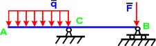Егер F = 8 H, q = 4 H/м, AC = 4 м, СВ = 6 м болса, онда B нүктесіндегі тіректіанықта: