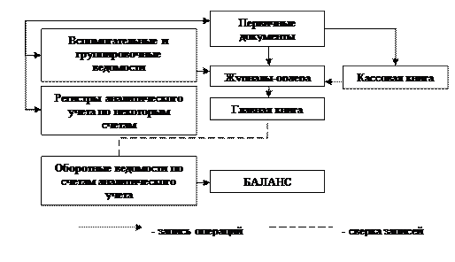 Рис. 9.6. Схема бухгалтерского учета по журнально-ордерной форме КОНТРОЛЬНЫЕ ВОПРОСЫ 1. Дайте определение понятия «учетные регистры». 2. По внешнему виду кратко охарактеризуйте содержание: a) а) бухгалтерской книги; b) б) карточек; c) в) свободных листов. 3. Раскройте особенности учетных регистров: a) а) по характеру записей; b) б) объему содержания операций; c) в) построению. 4. Назовите способы исправления ошибочных записей в бухгалтерском учете. Дайте их характеристику. 5. Что понимается под формой бухгалтерского учета? Перечислите формы. 6. Дайте характеристику формы бухгалтерского учета Журнал-Главная. 7. Какие организации относятся к субъектам малого предпринимательства? 8. Какими законодательными документами регулируется бухгалтерский учет в малых организациях? 9. Что представляет собой рабочий план счетов малой организации? 10. Дайте краткое содержание простой формы бухгалтерского учета в малых организациях. 11. Приведите порядок составления рабочего плана счетов в малых организациях. 12. Дайте краткую характеристику формы бухгалтерского учета с использованием регистра имущества в малой организации. 13. Какие учетные регистры (ведомости) бухгалтерского учета имущества и обязательств малой организации вы знаете? 14. В чем сущность мемориально-ордерной формы учета? 15. Что собой представляет мемориальный ордер? Назовите недостатки, присущие мемориально-ордерной форме учета. 16. Приведите схему бухгалтерского учета по мемориально-ордерной форме. 17. Каково содержание журнально-ордерной формы бухгалтерского учета? 18. Что собой представляет журнал-ордер? Раскройте схему бухгалтерского учета по журнально-ордерной форме.