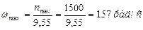 Максимальная скорость вращения двигателя принята равной 1500 об/мин. Соответственно