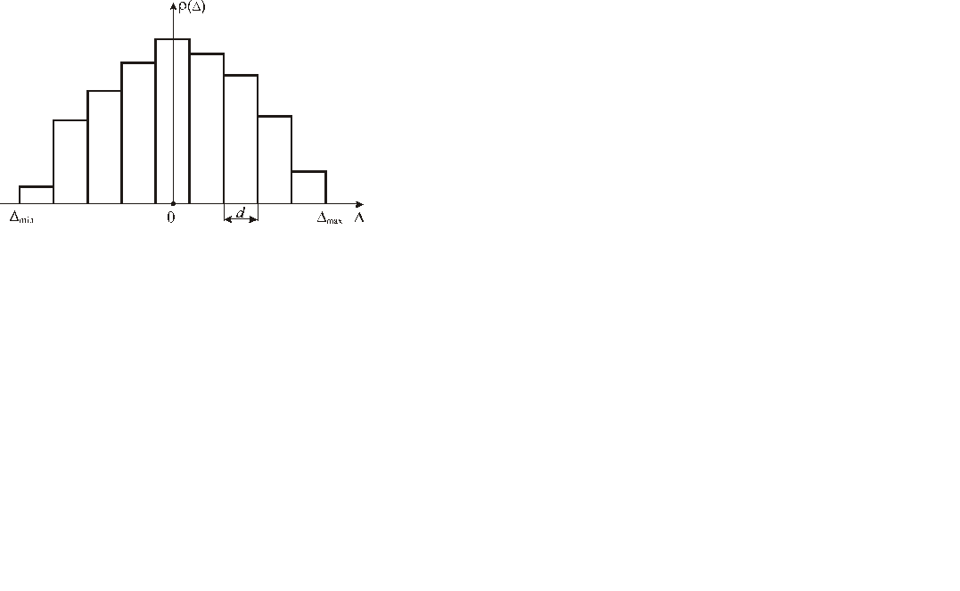 Энтропийное значение погрешности, представленное гистограммой распределения Если на основе ограниченного числа измерений была построена ступенчатая гистограмма, то, найдя ее энтропию, можно затем заменить гистограмму законом распределения выбранной формы (равномерным, нормальным) и определить энтропийный интервал погрешности. Пусть гистограмма состоит из m столбов.