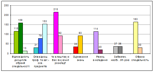 Рис.4.5. Причини позитивного/негативного ставлення студентів до організації навчального процесу.