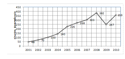 Рис. 4.10. Зміна кількості франчайзерів в Україні