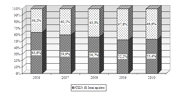 Рис. 4.11. Структура продажів корпорації «Pfizer» впродовж 2006-2010 рр. за регіональною ознакою