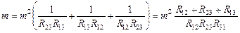 В электрических цепях имеют большое распространение структуры из трех ветвей в виде трехлучевой звезды и треугольника. Рассмотрим, в частности, эти фигуры, состоящие из резисторов: звезду сопротивлений и треугольник сопротивлений (рис. 1.3.14). При расчете электрических цепей часто оказывается целесообразным участок цепи, имеющий структуру звезды сопротивлений, преобразовать в треугольник сопротивлений, или наоборот, что позволяет иногда существенно упростить расчет цепи. Внешние, окружающие фигуру элементы цепи «не замечают» подобных преобразований, ибо потенциалы звезды и треугольника в процессе преобразования остаются неизменными. Задача 1.3.16 (рис. 1.3.14). Осуществить переход от звезды к треугольнику, что означает необходимость выразить резисторы R 12, R 23, R 13 треугольника через величины резисторов R 1, R 2, R 3звезды. Такой переход можно осуществить, используя метод узловых потенциалов.