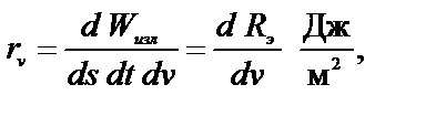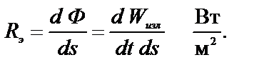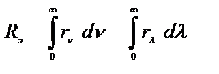 т.е. это полная мощность, переносимая электромагнитным излучением через какую либо поверхность при данной температуре. Энергетической светимостью (интегральной испускательной способностью) тела называется физическая величина Rэ, численно равная энергии электромагнитных волн всевозможных частот (или длин волн) от 0 до ¥, излучаемых за единицу времени с единицы площади поверхности тела: