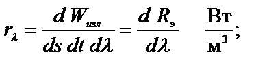 Для характеристики распределения энергии по спектру введена спектральная плотность энергетической светимости – энергия, излучаемая телом с единицы площади поверхности тела в единицу времени в единичном интервале длин волн (частот) при данной температуре: