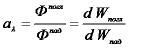Способность тела поглощать лучистую энергию характеризуется коэффициентом поглощения (поглощательной способностью), равным отношению потока излучения, поглощенного данным телом, к потоку излучения, упавшего на него: