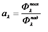 Так как коэффициент поглощения зависит от длины волны, то вводят монохроматический (спектральный) коэффициент поглощения (спектральная поглощательная способность), равный отношению потоков монохроматического излучения: