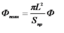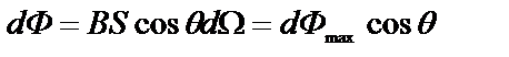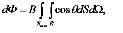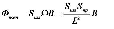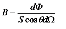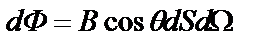 Напомним, что телесный угол, с вершиной в центре сферы равен отношению площади, вырезаемой образующими углами на поверхности сферы, к квадрату радиуса сферы. Исключая В, получим искомое соотношение между потоками: