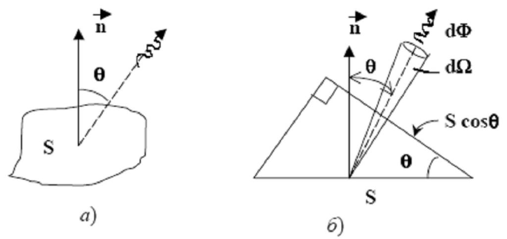 Рисунок 1. Для большинства светящихся тел яркость (лучистость) зависит от угла наблюдения: