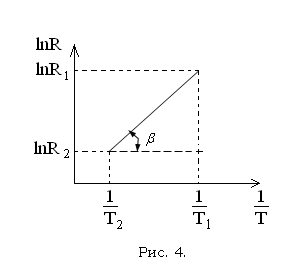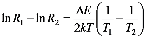 Здесь А – коэффициент, зависящий от физических свойств полупроводника. Из формулы (5) видно, что с ростом температуры сопротивление полупроводника R уменьшается. По зонной теории эта закономерность объясняется следующим образом: при увеличении температуры растет число электронов в свободной зоне и число дырок в валентной зоне, поэтому проводимость полупроводника увеличивается, а сопротивление уменьшается. У металлов с ростом температуры сопротивление увеличивается. Для определения ширины запрещенной зоны
