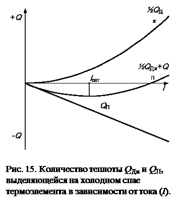 где r – омическое сопротивление термоэлемента. Будем считать, что около половины теплоты QДж поступает на холодный спай термоэлемента.