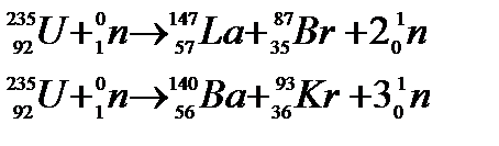 болатын жалғыз ғана бөлшектер емес. Әр ядролық бөліну кезінде 2 немесе 3 нейтрон бөлініп шығады. Мысал үшін бөліну реакциясының мүмкін арналарының екеуін келтірейік: