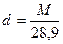 Если считать газ идеальным, то при T = 273,16 К, Р = 0,1 МПа и V = 22,414 л масса m равна молекулярной массе М газа. В тех же условиях масса 22,414 л воздуха составляет 28,9 г, откуда относительная плотность газа или пара относительно воздуха равна