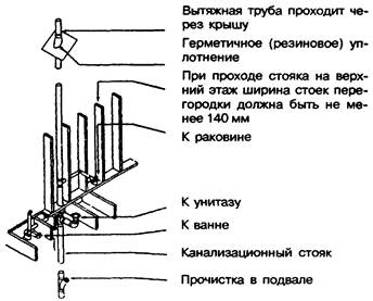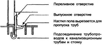 Рисунок 13-8— Прокладка канализационных труб в каркасе дома