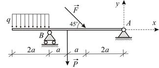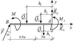 Определить реакцию заделки консольной балки, находящейся под действием сосредоточенной силы, пары сил и распределённой нагрузки (Рис. 1.34). Дано: