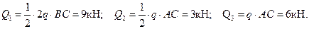 Найдём равнодействующую распределённой нагрузки. Модуль равнодействующей равен