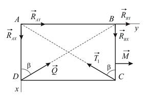 Рассмотрим равновесие пластины. Силовая расчётная схема представлена на Рис. 4.7. Сила реакции троса