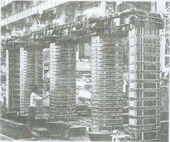 Рис. 6.18. Сердечник однофазною шунтирующего реактора мощностью 50 МВ • Л на напряжение 400 кВ для линии электропередачи Куйбышевская ГЭС — Москва (1955 г.)