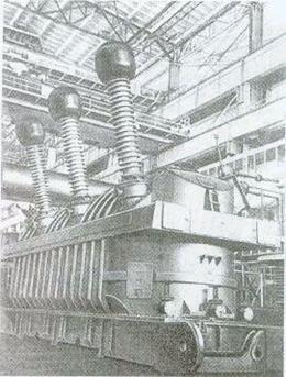 Освоены и серийно выпускаются специальные трансформаторы, предназначенные для питания электропечей различного назначения: дуговых сталеплавильных, руднотермических, индукционных плавильных, печей электрошлакового переплава, по выплавке корунда и т.д. (рис. 6.32.) Несмотря на сложности, связанные с распадом в 1991 г. СССР, трансформаторостроение России продолжает развиваться, обеспечивая потребности энергетики. Наиболее важными направлениями дальнейших исследований являются: рост номинальных мощностей и напряжений;