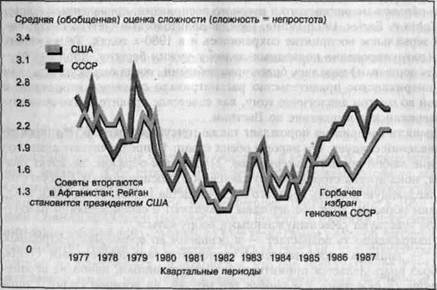«Медленно и болезненно до человека доходит, что искаженное русское восприятие Америки удивительно похоже на наше восприятие России, как зеркальное отражение». Анализ образов американского и русского восприятия, проведенный психологами (Tobin & Eagles, 1992; White, 1984) и политологами (Jervis, 1985), выявил, что зеркальное восприятие сохранялось и в 1980-х годах. Те же самые действия (патрулирование подводных лодок у чужих берегов, продажа оружия малым державам) казались более враждебными, когда они осуществляли их. Так, американское правительство рассматривало советское вторжение в Афганистан во многом аналогично тому, как советское правительство рассматривало американское вторжение во Вьетнам. Зеркальность восприятия порождает также гонку вооружений. Из политических заявлений следует, что народы обеих стран: 1) предпочитают взаимное разоружение любой другой альтернативе, 2) главным образом, не хотят разоружаться, пока другая сторона вооружается, и 3) воспринимают другую сторону как желающую достичь военного превосходства (Pious, 1985, 1993; табл. 15-2). Таким образом, хотя обе державы объявляют о своем желании разоружаться, обе чувствуют себя вынужденными вооружаться. Когда напряженность возрастает — в основном во время международных кризисов, — рациональное мышление становится затруднительным (Janis, 1989). Образ врага делается примитивным и стереотипным, наиболее вероятными становятся суждения, сделанные тем местом, на котором сидят. Соци- } ■ Часть 111. Социальные отношения альный психолог Филип Тетлок (Philip Tetlock, 1988) обнаружил этот феномен, анализируя сложность советской и американской политической риторики с 1945 года. Во время блокады Берлина, войны в Корее и советского вторжения в Афганистан политические высказывания упрощались до непреклонной терминологии в черно-белых тонах. В другие периоды — особенно после того как Михаил Горбачев стал Генеральным секретарем СССР (рис. 15-4) — в политических высказываниях признавалось, что мотивы каждой страны достаточно нетривиальны. Такой отход от примитивной риторики типа «мы хорошие — они плохие» был типичен перед новыми советско-американскими соглашениями, сообщает Тетлок. Его оптимизм подтвердился, когда президент Рейган в 1988 году отправился в Москву для подписания советско-американского договора о ядерных средствах средней дальности, а затем Горбачев посетил Нью-Йорк и объявил в ООН, что выведет 500 000 советских солдат из Восточной Европы: «Я хотел бы верить, что наши надежды оправдаются благодаря нашим совместным усилиям, с тем чтобы положить конец эре войн, конфронтации и региональных конфликтов, чтобы положить конец насилию над природой, ужасам голода и тщеты, так же как и политическому терроризму. Это наша общая цель, и достичь ее мы можем только вместе». Горбачев продемонстрировал комплексный стиль мышления, который облегчает достижение взаимовыгодных соглашений. Но, как показал коллапс бывшего Советского Союза, даже комплексные мыслители «Современная напряженность с ее угрозой национальной аннигиляции сохраняется из-за двух величайших иллюзий. Первая — полная убежденность со стороны советского лагеря, что капиталистические страны готовятся напасть на них; что рано или поздно мы собираемся нанести удар. А вторая — полная убежденность со стороны капиталистических стран, что Советы готов