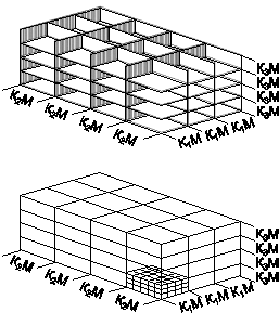 4.1 Модульная координация размеров в строительстве (МКРС) должна осуществляться на базе модульной пространственной координационной системы и предусматривать предпочтительное применение прямоугольной модульной пространственной координационной системы (рисунок 1). При проектировании зданий, сооружений, их элементов, строительных конструкций и изделий на основе модульной пространственной координационной системы применяют горизонтальные и вертикальные модульные сетки на соответствующих плоскостях этой системы.