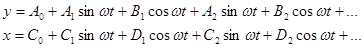 где w=2pt, а t – время, необходимое для вычерчивания контура любого знака. Схема включает генераторы гармоник, работающих синхронно от одного пускающего импульса. В зависимости от требуемой формы знаков используют то или иное число гармоник. В таблицы записывают значения функций X и Y в некоторые определенные моменты времени, и по известным методам определяется разложение их в ряды, т.е. значения коэффициентов А0, А1, А2, В1, В2, С0, С1, С2, D1, и т.д. Задачей схемы является синтез гармоник, взятых для каждого знака со своими коэффициентами. Такой синтез можно, например, произвести с помощью трансформаторов, в первичные обмотки которых подаются напряжения гармоник, а вторичные намотаны в соответствии со значением коэффициентов рядов Фурье. Данный метод нельзя считать перспективным, поскольку он связан с рядом трудностей, в частности весьма сложна настройка генераторов гармоник. В простых цифровых индикаторах (алфавит от 0 до 9) иногда реализуют разновидность метода сложения гармоник, суть которой состоит в следующем. На отклоняющие пластины ЭЛТ подаются синусоидальные напряжения, одно из которых по частоте вдвое выше другого: