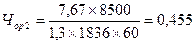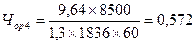 где Nj - годовая программа выпуска деталей j-го типа, шт., tij - трудоемкость i-й операции по изделию j-го вида, мин; kвнi - коэффициент выполнения норм по i-ой группе оборудования; Фдр - действительный годовой фонд времени работы рабочего, ч.