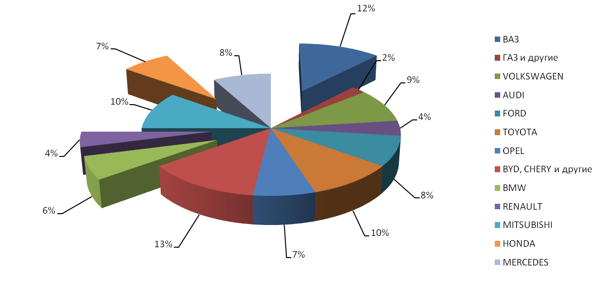 Таблица 1 – Изучение структуры парка автомобилей и рынка автосервисных услуг*