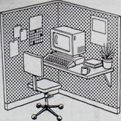 VEAL-FATTENING PEN: Small, cramped office workstations built of fabric-covered disassemblable wall partitions and inhabited by junior staff members. Named after the small preslaughter cubicles used by the cattle industry. fattening pens next to me (we called our area the junior stockyard or the junior ghetto, alternately) weren't feeling well or producing much, either. As I remember, Karen was spooked about the Sick Building business more than any of us. She had her sister, who worked as an X-ray technician in Montreal, give her a lead apron, which she wore to protect her ovaries when she was doing her keyboarding work. She was going to quit soon to pick up work as a temp: 'More freedom that way —easier to date the bicycle couriers.' "Anyway, I remember I was working on a hamburger franchise campaign, the big goal of which, according to my embittered ex-hippie boss, Martin, was to 'get the little monsters so excited about eating a burger that they want to vomit with excitement.' Martin was a forty-year-old man saying this. Doubts I'd been having about my work for months were weighing on my mind. "As luck would have it, that was the morning the public health inspector came around in response to a phone call I'd made earlier that week, questioning the quality of the working environment. "Martin was horrified that an employee had called the inspectors, and I mean really freaked out. In Toronto they can force you to make architectural changes, and alterations are ferociously expensive—fresh air ducts and the like—and health of the office workers be damned, cash signs were dinging up in Martin's eyes, tens of thousands of dollars' worth. He called me into his office and started screaming at me, his teeny-weeny salt and pepper ponytail bobbing up and down, 'I just don't understand you young people. No workplace is ever okay enough. And you mope and complain about how uncreative your jobs are and how you're getting nowhere, and so when we finally give you a promotion you leave and go pick grapes in Queensland or some other such nonsense.' "Now, Martin, like most embittered ex-hippies, is a yuppie, and I have no idea how you're supposed to relate to those people. And before you start getting shrill and saying yuppies don't exist, let's just face facts: they do. Dickoids like Martin who snap like wolverines on speed when they can't have a restaurant's window seat in the nonsmoking section with cloth napkins. Androids who never get jokes and who have something scared and mean at the core of their existence, like an under-fed Chihuahua baring its teeny fangs and waiting to have its face kicked in or like a glass of milk sloshed on top of the violet filaments of a bug barbecue: a weird abuse of nature. Yuppies never gamble, they calculate. They have no aura: ever been to a yuppie party? It's like being in an empty room: empty hologram people walking around peeking at themselves in mirrors and surreptitiously misting their tonsils with Binaca spray, just in case they have to kiss another ghost like themselves. There's just nothing there. "So, 'Hey Martin,' I asked when I go to his office, a plush James Bond number overlooking the downtown core—he's sitting there wearing a computer-generated purple sweater from Korea—a sweater with lots of texture. Martin likes torture. 'Put yourself in my shoes. Do you really think we enjoy having to work in that toxic waste dump in there?' "Uncontrollable urges were overtaking me. ' '... and then have to watch you chat with your yuppie buddies about your gut liposuction all day while you secrete artificially sweetened royal jelly here in Xanadu?' "Suddenly I was into this tres deeply. Well, if I'm going to quit anyway, might as well get a thing or two off my chest. ' 'I beg your pardon,' says Martin, the wind taken out of his sails. ' 'Or for that matter, do you really think we enjoy hearing about your brand new million-dollar home when we can barely afford to eat Kraft Dinner sandwiches in our own grimy little shoe boxes and we're pushing thirty? A home you won in a genetic lottery, I might add, sheerly by dint of your having been born at the right time in history? You'd last about ten minutes if you were my age these days, Martin. And I have to endure pinheads like you rusting above me for the rest of my life, always grabbing the best piece of cake first and then putting a barbed-ire fence around the rest. You really make me sick.' "Unfortunately the phone rang then, so I missed what would have undoubtedly been a feeble retort... some higher-up Martin was in the I middle of a bum-kissing campaign with and who couldn't be shaken off the line. I dawdled off into the staff cafeteria. There, a salesman from the copy machine company was pouring a Styrofoam cup full of scalding hot coffee into the soil around a ficus tree which really hadn't even recovered yet from having been fed cocktails and cigarette butts from the Christmas party. It was pissing rain outside, and the water was drizzling down the windows, but inside the air was as dry as the Sahara from being recirculated. The staff were all bitching about commuting time and making AIDS jokes, labeling the office's fashion victims, sneez-