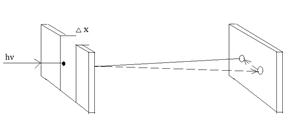 2. Гейзенбергтің анықталмағандықтар қатынасы. Зат бөлшектерінің толқындық және корпускулярлық екі жақты табиғатыты кез келген ұсақ бөлшектерді әрі жарықтың толқындық, әрі фотонның кванттық теориясымен сипаттауға мүмкіншілік береді. Классикалық механикада қозғалатын кез келген материалдық нүктенің белгілі бір траекториясы болады және кез келген уақытта оның координатасы мен импульсін анықтауға болады. Ал, көзге көрінбейтін ұсақ бөлшектерді болса (микробөлшек), өзінің толқындық қасиеті болу себебінен классикалық бөлшектерден ерекше айырмасы болады. Микробөлшектердің негізгі айырмасы олардың траекториясы болмайды, сондықтан да бір мезгілде бөлшектердің координатасы мен импульсін дәл өлшеудің мүмкіншілігі жоқ. Олай болса микробөлшектерді микробөлшектерге тән физикалық шамаларымен тек жуықтап ғана сипаттауға болмайды. Осы пікірге байланысты толқындық механикада мынандай принцип бар: электронның (немесе кез келген ұсақ бөлшектердің) орнын және импульсін бір мезгілде дәл өлшеу мүмкін емес. Мысалы, 1-суретте фотонның x осі бойынша координатасын өлшегендегі қателік Δα пен Δv көбейтіндісінің шамасы