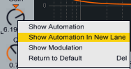 Также автоматизацию можно сразу добавить на новый трек. Для этого щёлкните правой кнопкой мыши по параметру который хотите автоматизировать и выберите из списка Show Automstion in New Line.