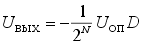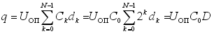 Выходное напряжение ЦАП найдем как общее напряжение на крайнем правом узле, вызванное суммарным действием всех Ui. При этом напряжения узлов суммируются с весами, соответствующими коэффициентам деления резистивной матрицы R-2R. Получим