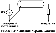 · Чтобы электростатический экран работал эффективно, он должен быть подключен к общему потенциалу экранируемой схемы. Если общим потенциалом для схемы является корпус устройства или земля, то экран должен быть также соединен с корпусом или землей соответственно. Но заземление экрана становится бесполезным, если сигнал передается не относительно земли. · Оплетка экранированного кабеля должна быть подключена к общему выводу (опорному потенциалу) источника сигнала (рис. 4).