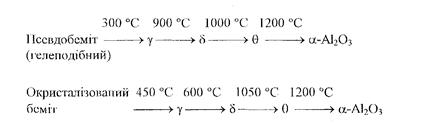 де Основні реакції отримання активного оксиду алюмінію можна записати у вигляді наступних рівнянь:
