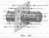Линии напряженности перпендикулярны рассматриваемой плоскости и направлены от нее в обе стороны. В качестве замкнутой поверхности мысленно построим цилиндр, основания которого параллельны заряженной плоскости, а ось перпендикулярна ей. Так как образующие цилиндра параллельны линиям напряженности (cosα = 0),то поток вектора напряженности сквозь боковую поверхность цилиндра равен нулю, а полный поток сквозь цилиндр равен сумме потоков сквозь его основания (площади оснований равны и для основания En совпадает с E), т.е. равен 2ES. Заряд, заключенный внутри построенной цилиндрической поверхности, равен σS. Согласно теореме Гаусса