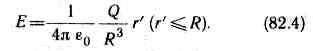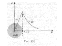 а внутри его изменяется линейно с расстоянием r' согласно выражению (82.4). График зависимости E от r приведен на рис. 130.