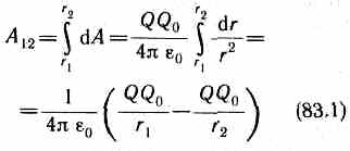 Работа при перемещении заряда Q0 из точки 1 в точку 2 не зависит от траектории перемещения, а определяется только положениями начальной (1) и конечной (2) точек. Следовательно, электростатическое поле точечного заряда является потенциальным, а электростатические силы — консервативными.