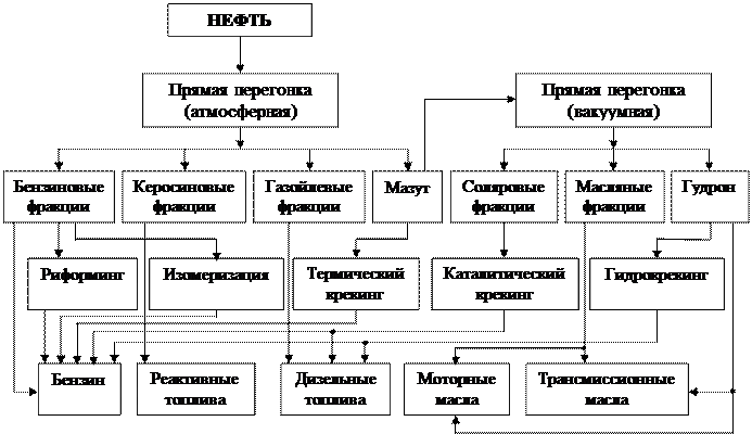 Рис. 14. Схема получения топлив и масел из нефти