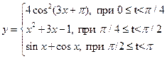2.6. Розрахувати значення кусково-заданої функції на інтервалі від 0 до π, з кроком 0.02. Вивести результати у вигляді таблиці, виведення організувати поекранно, по натисканню довільної клавіші.