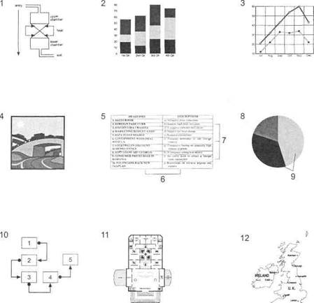 V Visual Aids. Pictures often help to make information clearer. A. Label the following using words from the box.