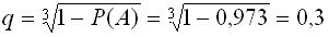 По условию: n =4, k =3, р =0,7, q =0,3.